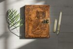 vintage handmade leather journal. Crafted with genuine leather, it radiates authenticity and charm, perfect for those who appreciate classic craftsmanship. The premium antique lock closure adds a touch of elegance and security, ensuring your thoughts and memories are safeguarded within its pages. Inside, you’ll discover 200 White handmade pages, providing ample space for your musings, sketches, and stories to unfold. Whether it’s for journaling, sketching, or planning, this versatile journal is a timeless companion for your creative endeavors. Treat yourself or a loved one to this exquisite piece, a celebration of tradition and creativity